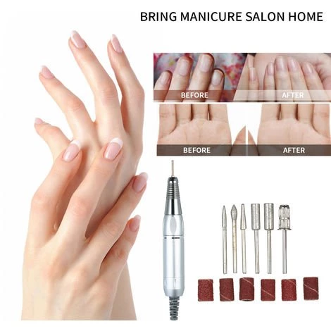 Multifunktions-Nagel-Bohrgerät — 6 verschiedenes Metall-Bits und 6 Schleifbänder. Twist chunk Schließanlage können Bits einfach und ohne Werkzeug wechseln. Perfekt zum Schleifen, Schnitzen, Schneiden, Polieren, Entfernen von Gel Lack und Kutikula für beide Acryl Nägel und natürlichen Nägel.