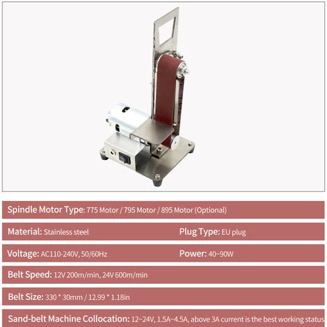 Dies ist ein multifunktionales Bandschleifer, Mini tragbar, geringes Rauschen, kann fur High-Speed-Stahlbohrer verwendet werden, biß Grobschliff, Klingenkante, feiner Wolframstahl Werkzeug Drehen Schleifen, Bodhi Wurzel Polieren etc., einfach zu installieren und zu bedienen ist ein Haus DIY-Tool.