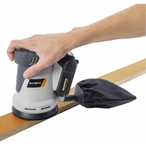 Bei effektiver Schleifarbeit mit dem Exzenterschleifer fallen reichlich Späne an. Die nimmt das Werkzeug in seinem Staubauffangbeutel auf. Das hält die Späne vom Werkstück fern und verhindert eine Belastung der Arbeitsumgebung mit Staub. Ein weiterer großer Vorteil liegt in dem einheitlichen Akkusystem: Der Batavia Exzenterschleifer gehört zur Produktserie 18V Maxxpack Collection, die mit einer einheitlichen Stromversorgung arbeitet. Sie können über 30 Werkzeuge mit den gleichen Akkus betreiben. Zu dieser Reihe gehören unter anderem Akkuschrauber, Winkelschleifer, Akkunagler und angetriebene Abflussspiralen zur Rohrreinigung. Für die Arbeit im Garten gehören unter anderem Heckenscheren, Druckreiniger und Rasentrimmer zum Angebot. So können Sie mit dem gleichen Akkusystem Ihren Bedarf an mobilen Elektrowerkzeugen abdecken. Bei den Akkus haben Sie die Wahl zwischen Ausführungen mit 2,0 und 4,0 Ah Kapazität. Alle Akkus lassen sich mit den gleichen Ladegeräten von Batavia aufladen. So vereinfachen Sie Ihren Bestand an Akkus und Ladegeräten.