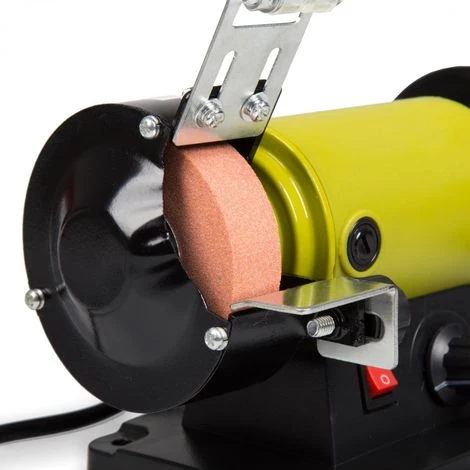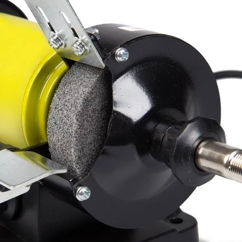 Praktische Doppelschleifer Schleifstation zum Einsatz im Hobby- und Bastelbereich. Er ist geeignet für alle Schärfarbeiten beispielsweise an Messerklingen und Scheren. Durch die integrierte flexible Welle sind zudem Gravuren und sehr feine Schleifarbeiten möglich.
