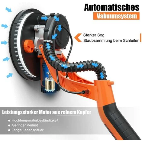 - 【Automatisches Staubauffangsystem】Diese Schleifmaschine verfügt über ein automatisches Absaugsystem, das beim Schleifen der Wand bis zu 99,99% des Staubes auffängt. So hält dieser Trockenbauschleifer die Umgebung vollkommen ohne Staubsauger sauber. In Verbindung mit einem flexiblen Schlauch und einem Staubfangbeutel ermöglicht diese Schleifmaschine den perfekten, staubfreien Effekt.
