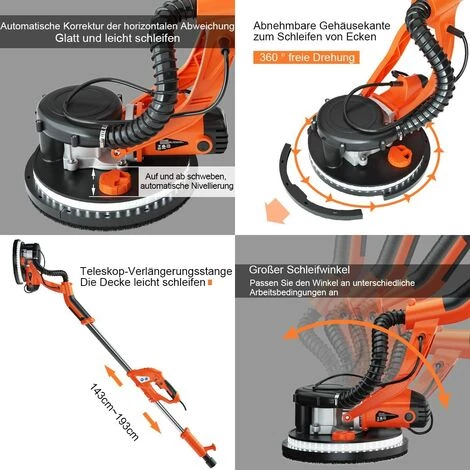 - 【Vielseitige Anwendungsmöglichkeiten】Unsere Schleifmaschine arbeitet mit einem 750 W Kupfermotor, der effiziente und verlässliche Kraft zum Schleifen liefert. Dieser Schleifer kann automatisch Abweichungen beim horizontalen Schleifen korrigieren und ein glatteres Schleifergebnis liefern. So ist dieser Schleifer die perfekte Wahl, wenn Sie zuhause Wände oder Decken abschleifen wollen.