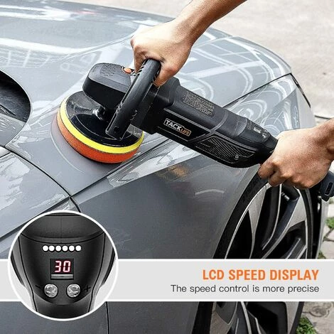FEMOR Poliermaschine, 1500 W Polierer Mit Variabler Geschwindigkeit, LCD-Display, 180 Mm Polierteller/Polierpad/Wollscheibe, D-Griff/Zusatzhandgriff Geeignet
