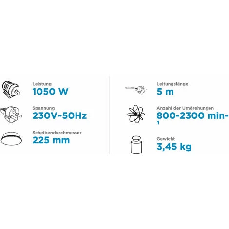- Rotationsgeschwindigkeit: 800 – 2.300 U/min