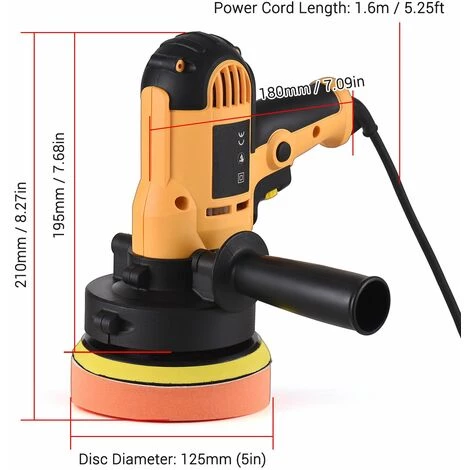 Dieser elektrische Polierer ist ein wunderbares Werkzeug zum Polieren, Wachsen, Polieren und Entfernen von Wirbeln durch Hochgeschwindigkeitsrotation der Scheibe. Ausgestattet mit einem zusätzlichen Griff für eine bequemere Verwendung, ist es für Autos, Böden, Möbel, Jade, Porzellan und mehr geeignet.