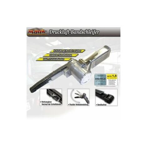 Der Druckluft Bandschleifer, Polierschleifer eignet sich zum Schleifen auch an schwer zugänglichen Stellen. Durch die flexible Winkeleinstellung lässt sich der Schleifkopf in 360 Grad variieren.