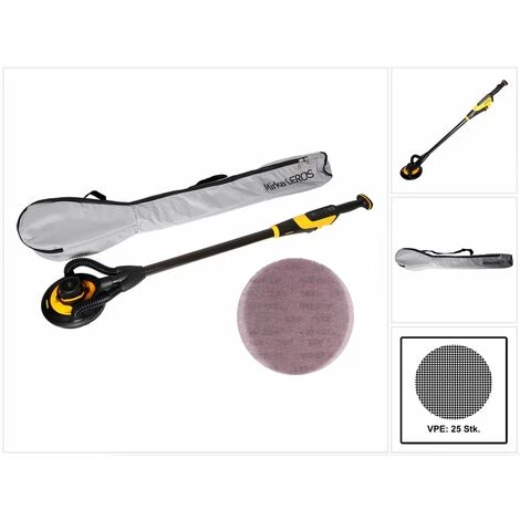 Dieser einzigartige Wand- und Deckenschleifer von Mirka überzeugt mit nur 3,5 kg Gewicht und einem bürstenlosen Motor. Das geringe Gewicht ermöglicht dem Anwender ein Schleifen über längere Zeiträume, ohne den Körper zu belasten. Ein weiterer Vorteil ist die 180°-Flexibilität am Schleifkopf. Die Oberfläche kann von einem besseren Winkel erreicht werden, was dem Anwender eine ergonomische Position ermöglicht. Mirka LEROS hat eine exzentrische Bewegung. Dank dieser reagiert die Maschine genau auf die Bewegungen des Anwenders. Eine praktische Tragetasche sorgt dafür, dass der Schleifer stets gut verstaut und transportiert werden kann.