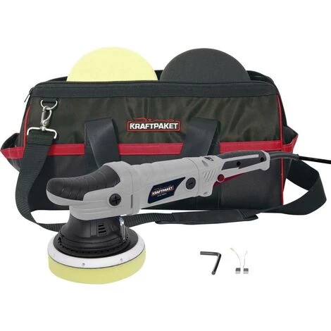 Mit dem großen 21mm XXL-Polier-Hub können höhere Polierleistungen erzielt werden. Große Flächen sind schnell bearbeitet. Die Dual-Action-Technik mit ihren exzentrischen Bewegungen ist für alle Lackoberflächen geeignet. Diese Poliertechnik ermöglicht ein hologrammfreies Polieren. Die über einen weiten Bereich regelbare Drehzahl ermöglicht auch Ungeübten – vom Start weg – sehr gute Polierergebnisse zu erzielen. Der breite Drehzahlbereich lässt Polierarbeiten schon ab niedrigen 2.100 min-1 Hubgeschwindigkeit zu. Die Motor-Drehzahl ist stufenlos regulierbar ab 2.100-5.000 min-1, der Polierhub beträgt 21 mm. Die Softstartkontrollfunktion vermeidet Verlust der Pflegemittel und sorgt für eine kontrollierte Beschleunigung. Eine extrem niedrige Wärmeentwicklung und geringe Belastung der Lackoberfläche sind die Vorteile. Der wechselbare Polierteller mit 150mm Durchmesser ist geeignet für Polierschwämme ab 150mm bis 165mm Durchmesser. Im Lieferumfang sind zwei Polierschwämme mit 150mm Durchmesser (weich & medium) enthalten. Das gelbe Polierpad ist geeignet zum Auftragen von Polituren und mit dem schwarzen weichen Polierschwamm können Polituren abgenommen oder Lackoberflächen mit Wachs versiegelt werden. Das extralange Kabel mit 5-Metern Länge und ein Dauerbetriebsschalter ermöglichen angenehme Polierarbeiten mit maximaler Bewegungsfreiheit. Die Ergonomie ist geeignet für Links- und Rechtshänder. Die Dino KRAFTPAKET Exzenter-Poliermaschine wird mit einer verschließbaren Canvas-Tragetasche ausgeliefert, mit Platz für beide Polierpads, Stützteller, Wechselschlüssel, Ersatzkohlen, Poliermaschine und Ihrer favorisierten Politur oder Versiegelung