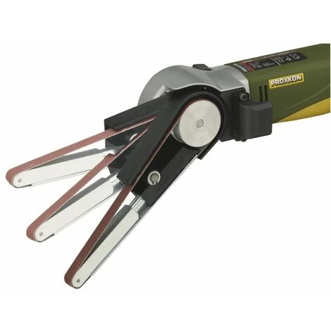 Der PROXXON Bandschleifer BS/E ist kompakt, drehmomentstark, robust und vielseitig. Made in EU. Zum Ausschleifen kleiner Öffnungen, Nachschliff von Formen, Flächen, Radien, Einschleifen von Nuten, Entgraten und Anfasen von Präzisionsteilen. Mit Getriebekopf aus Alu-Druckguss für hohe Stabilität und präzise Kugellager-Passung. Hauptgehäuse aus glasfaserverstärktem POLYAMID. Balancierter DC-Spezialmotor, durchzugskräftig, leise und langlebig. Stufenlose Drehzahlregelung (Vollwellenelektronik). Der Schleifarm ist durch Knopfdruck bis zu 60° schwenkbar. Absaugstutzen mit Adapter für Staubsauger ermöglicht sauberes Arbeiten. Inklusive 4 Schleifbänder (je 2 Stück K 80 und K180). Sicher aufbewahrt im formschönen und superstabilen Koffer aus hochwerigem PP. 220 – 240 V. 100 W.; Schleifband 10 x 330 mm (verfügbare Schleiffläche 10 x 110 mm); Schleifgeschwindigkeit 225 – 450 m/min.; Länge 350 mm.; Gewicht 650 g; Schutzisoliert nach Klasse 2•Leiser und langlebiger DC-Spezialmotor mit hoher Durchzugskraft.•Getriebekopf aus Alu-Druckguss für hohe Stabilität und präzise Kugellager-Passungen.•Stufenlose Drehzahlregelung mit Vollwellenelektronik.