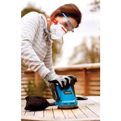 18V 2Ah Li-Ion angetriebener Exzenterschleifer mit 2Ah Li-Ion Akku und intelligentem 1-Stunden-Schnellladegerät. Eine Leerlaufdrehzahl von 12.000 U/min und ein praktisches Klett-Schleifpad. Staubabsaugung und Staubbeutel, versiegelter Ein/Aus-Schalter und ergonomische, vibrationsdämpfende, umspritzte Griffe. Enthält 1 x Schleifteller.