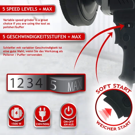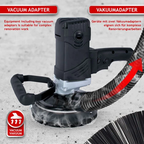 Mit unserem Betonschleifer können Sie ohne großen Aufwand große Erfolge erzielen! Dieser handliche Schleifer glättet unebene Oberflächen und sorgt für perfekte Ergebnisse an Ihren Wänden, Decken oder Böden. Ausgestattet mit einem 1500-Watt-Motor und einem speziell entwickelten 140-mm-Kopf entfernt unsere Flächenschleifmaschine mühelos losen Putz, Farbreste oder alte Graffiti. Diese Fräse wird mit einer ausführlichen Bedienungsanleitung sowie dem Werkzeugsatz (Inbusschlüssel), Ersatzkohle und Staubsaugeradapter geliefert.