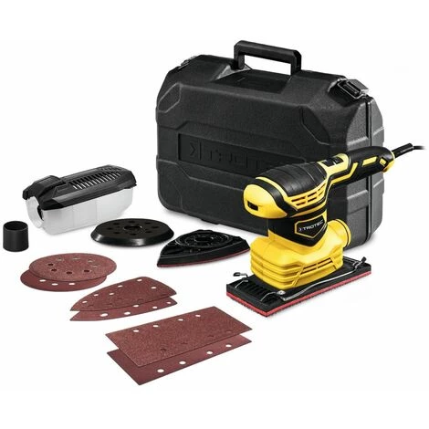 Schwingschleifer, Deltaschleifer oder doch besser Exzenterschleifer? Angesichts vielfältiger Schleifanwendungen in der Tat eine knifflige Entscheidung, gäbe es da nicht den Multifunktionsschleifer PMSS 11-220 von Trotec. Mit diesem 3-in-1-Multifunktionsschleifer verfügen Sie in jeder Situation über das passende Schleifwerkzeug, denn aufgrund seiner drei variabel nutzbaren Wechsel-Schleifplatten können Sie den PMSS 11-220 bedarfsgerecht als Schwing-, Delta- oder Exzenterschleifer verwenden.