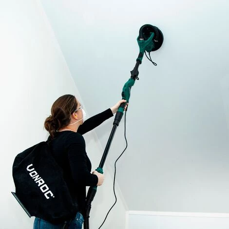 Müssen Sie bei einer Arbeit hohe Decken und Wände schleifen? Dieser VONROC Decken- / Wandschleifer ist dank seines Teleskopgriffs und des 4 m langen Kabels die ideale Hilfe. Die Maschine wird auch als Langhalsschleifer oder Giraffenschleifer bezeichnet. So müssen Sie nie wieder auf einer wackeligen Leiter stehen, um hochgelegene Oberflächen schleifen zu können.